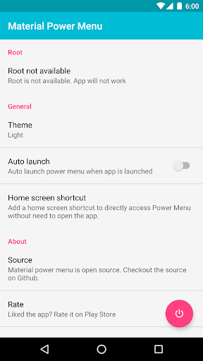 مع إطار Xposed، يمكن لهذا التطبيق تجاوز قائمة طاقة الأسهموبعداضغط على زر الطاقة الإضافي للوصول إلى القائمة العادية، ثم اضغط على Power Off للوصول إلى قائمة طاقة المواد مع خيارات إعادة التشغيل المتقدمة ومع الرسوم المتحركة الكشف.