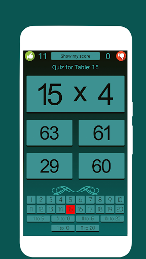 Dought Mode يشمل طاولة رياضيات واحدة و Rang من اختبار الجداول الرياضيات.