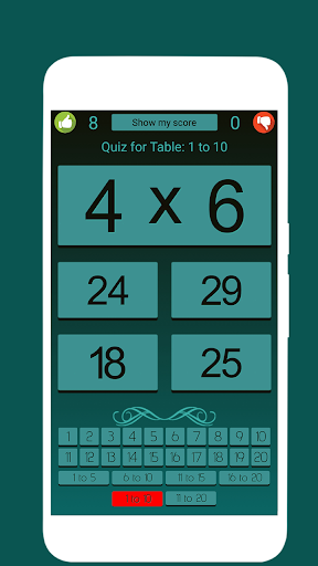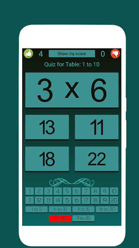 تعلم جداول الرياضيات مع Quiz هو تطبيق التعلم الذاتي الكامل للأطفال. إنه سهل الاستخدام للغاية.