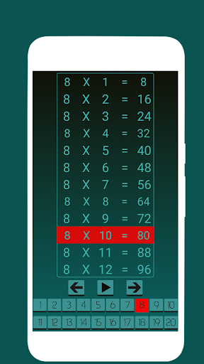 من 1 إلى 20 طاولات الرياضيات متضمنة في وضع التعلم والمسابقة. كما يدعم الوضع التلقائي (وضع القراءة الذاتي)، تحتاج فقط إلى الاستماع إلى جداول الرياضيات.