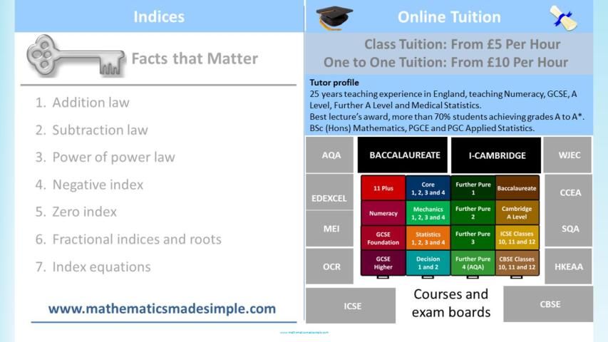 والرياضيات المستوى، AS الرياضيات، Core1 (C1) الجبر مؤشرات، نقي الرياضيات، GCSE الرياضيات العالي، I-كامبردج.