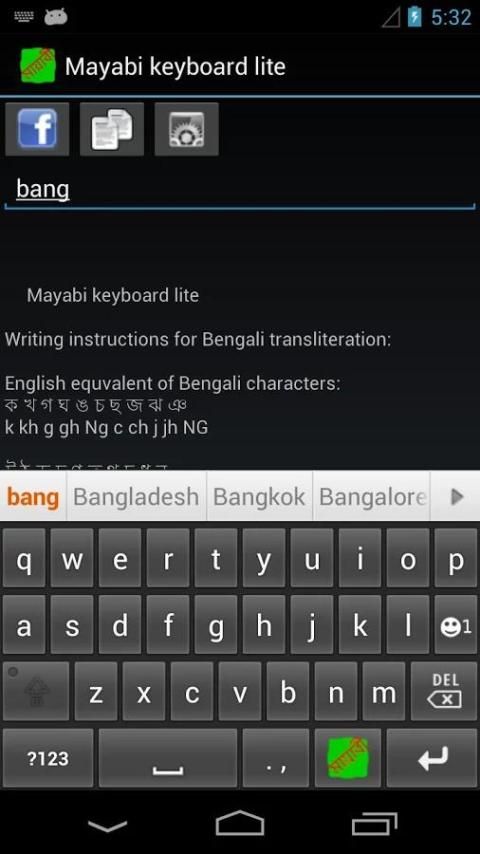 استخدام هذا الإصدار لايت، يمكنك كتابة البنغالية حتى في البنغالية الأجهزة غير معتمد (الإصدار ميزة الممتازة).