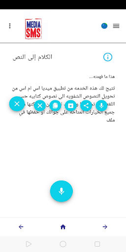• الكلام إلى النص : يتيح لك هذا الخيار إملاء النص الخاص بك بلغة النظام التي تم اختيارها في هاتفك المحمول ، وسيتم نسخ النص على الفور إلى نص بواسطة التطبيق ، مع توفر 5 خيارات