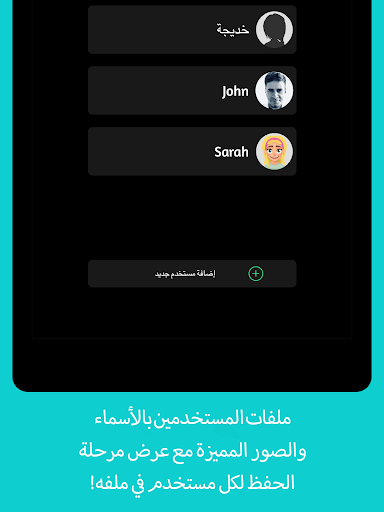 - ملفات المستخدمين بالأسماء والصور المميزة مع عرض مرحلة الحفظ لكل مستخدم في ملفه