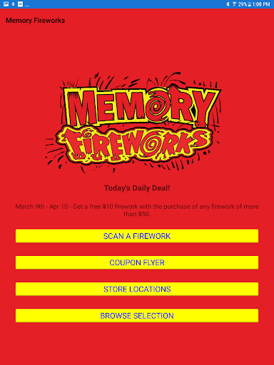 يجلب لك الألعاب النارية الذاكرة أكبر مجموعة من الألعاب النارية بأقل الأسعار في نورث داكوتا!من خلال تطبيقنا، يمكنك مسح رموز شريط الألعاب النارية في متاجرنا وعرض مقطع فيديو إظهار المنتج!تحقق مرة أخرى مع التطبيق في كثير من الأحيان للنظر في صفقة اليومية لدينا، قدمت حصرا لمستخدمي التطبيقات!