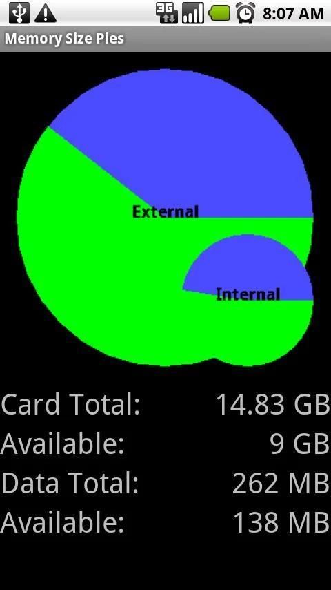 يعرض حجم الذاكرة الفطائر مساحة التخزين المتوفرة لبطاقة الذاكرة الخاصة بك وعلى ذاكرة النظام الخاص بك في شكل مخطط دائري مريحة.