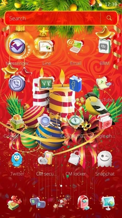 يتكون 1. عيد ميلاد سعيد قاذفة الموضوع من شاشة القفل مع أنيقة عيد ميلاد سعيد قاذفة خلفية وأحمر حزمة مشرقة الرموز الاسلوب.