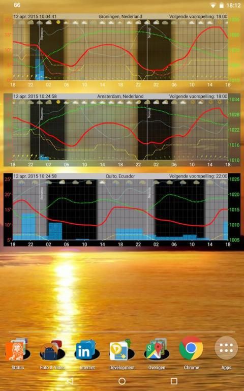 يمكن أن تظهر على الرسم البياني للتنبؤ بأحوال الطقس في تطبيق الرئيسي أو في الحاجيات الشاشة الرئيسية. يمكن أن تظهر الحاجيات متعددة للمواقع وبيئات مختلفة في وقت واحد.
