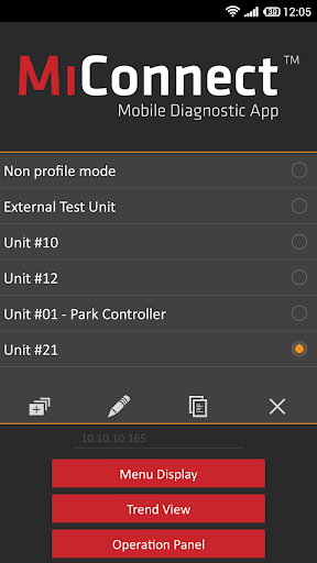 Menu Display - is a graphical user interface for the Controller Operation System and current applications running on the controller, which appears on your mobile device. The Menu Display enables the user to access application data through menu items. These menu parameters have been previously programmed by the developer. The menu items are available in read-only and read/write mode depending on the User Access Rights. Read/write mode allows the user to change various settings.