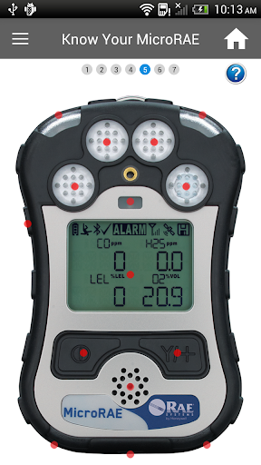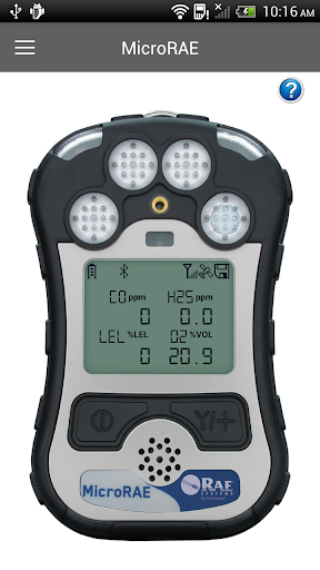 The Honeywell MicroRAE app duplicates the experience of operating a MicroRAE handheld gas monitor. It comes with an interactive tutorial, which simulates navigation through the MicroRAE user interface via the same buttons and display as an actual instrument. By default, the app shows normal readings for configured sensors.