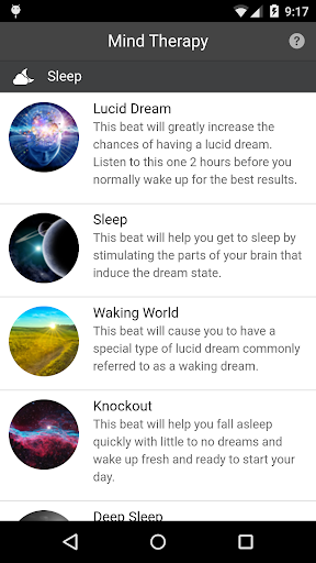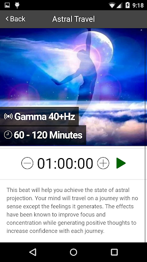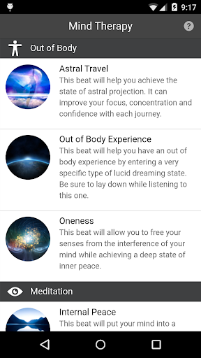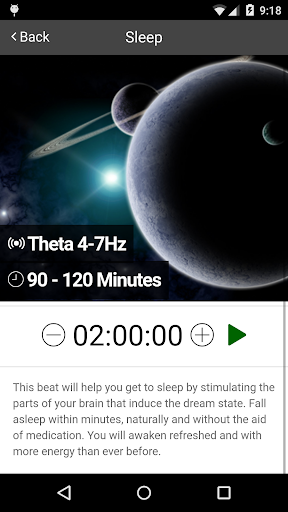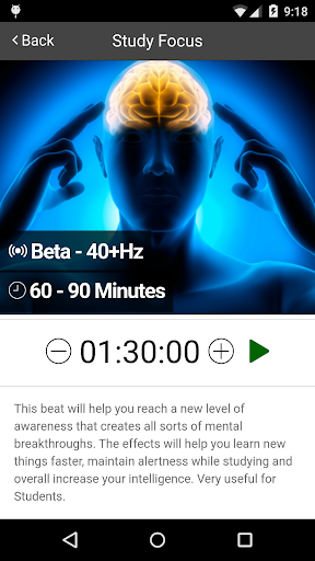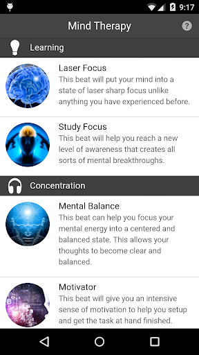 This app takes a selection of the most high quality and effective Binaural Beats and organizes them into what someone would most like want to use in order to make their day more efficient, productive and stress-free.
