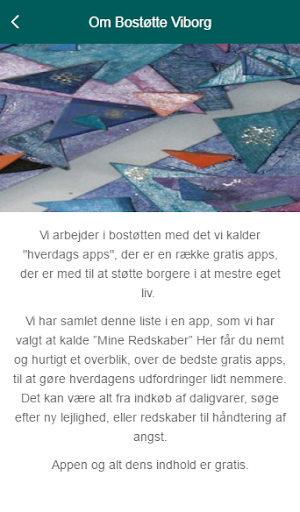 Vi har samlet denne liste i en app, som vi har valgt at kalde ”Mine Redskaber” Her får du nemt og hurtigt et overblik, over de bedste gratis apps, der kan være med til at gøre hverdagens udfordringer lidt nemmere. Det er alt fra hjælp til indkøb af dagligvarer, søge efter ny lejlighed, eller redskaber til håndtering af angst.
