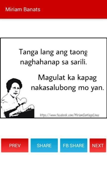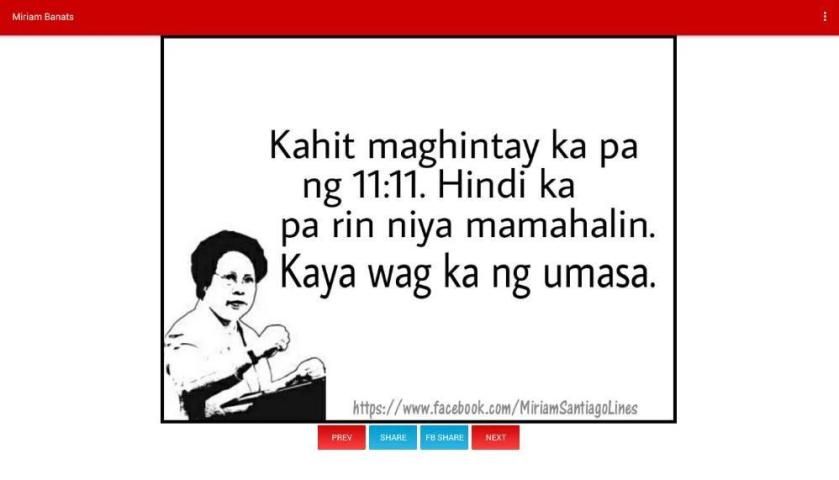 وهنا مجموعة من السناتور ميريام سانتياغو التقاط خطوط يمكنك مشاركتها مع أصدقائك، وأعداء، والجيران والأحباب.