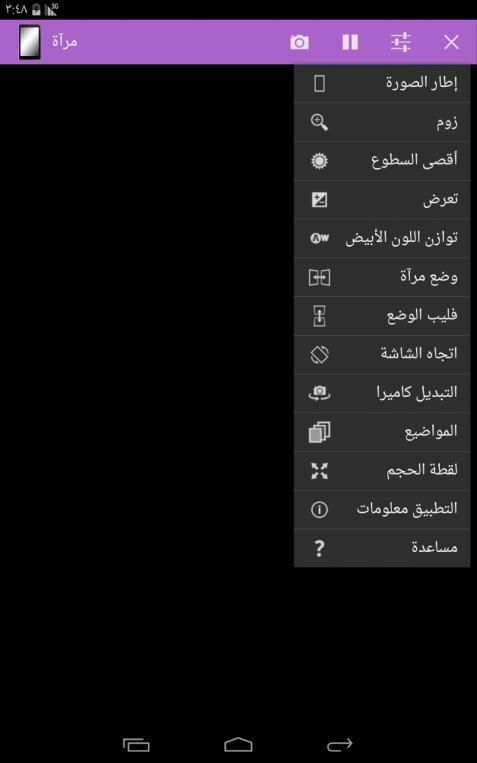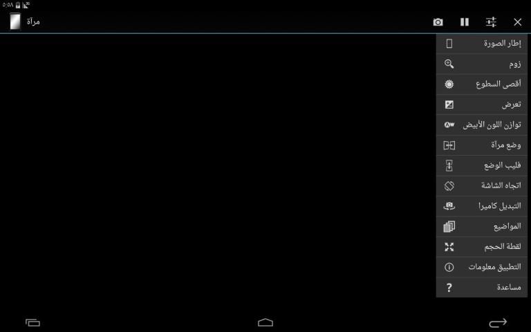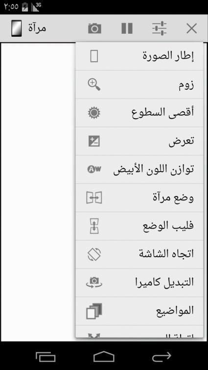 - الخيار ل100٪ سطوع الشاشة أثناء استخدام مرآة