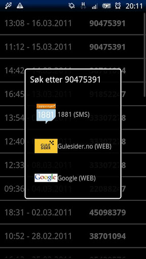 MissedIT is an application for Norwegian users.Lurer du p hvem som har ringt? Da er du kommet til rett appMissedIT er en applikasjon som gir deg oversikt over ukjente telefonnummer fra telefonens tap anrop liste.Med ukjente telefonnummer menes alle telefonnummer som ikke finnes i kontaktlisten. Ved klikke p telefonnummer du lurer p vil du f enn s lenge 3 valg:send sms til 1881. Utfre sk p Gulesider.no i din favoritt nettleser. Utfre sk etter telefonnummeret p google no i din favoritt nettleser.Applikasjonen er selvsagt gratis, uten reklame og skulle du ha et sterkt nske om videreutvikle denbruke deler av koden gir vi gladelig bort kildekoden. Send meg et hint kan du f tilgang til en reposerver.Applikasjonen er testet p Sony Ericsson Xperia x10i og emulator Tilbakemeldinger mottas med pne armer Ris og ros, vi liker kontakt med mennesker og biter normal ikke.....:Dersom du savner din favoritttjeneste s gi meg et hint s legges dette inn og kommer med i en oppdatering om kort tidLes gjerne note 1 til 3, str noe fornuftig her:Note 1: Dette er en applikasjon laget p fritiden da vi selv har hatt sett et personlig behov for dette. Applikasjonen har ingenting med 1881, Gulesider.noeller Google gjre. Heller ikke vre arbeidsgivere har noe med dette gjre. Note 2: SMSsending og Webbruk kan koste penger avhengig av ditt kundeforhold til mobilopperatrSMStjenester.Note 3: For forbedre applikasjonen kan databruk bli samlet inn via Google Analytics.Ha en god dag