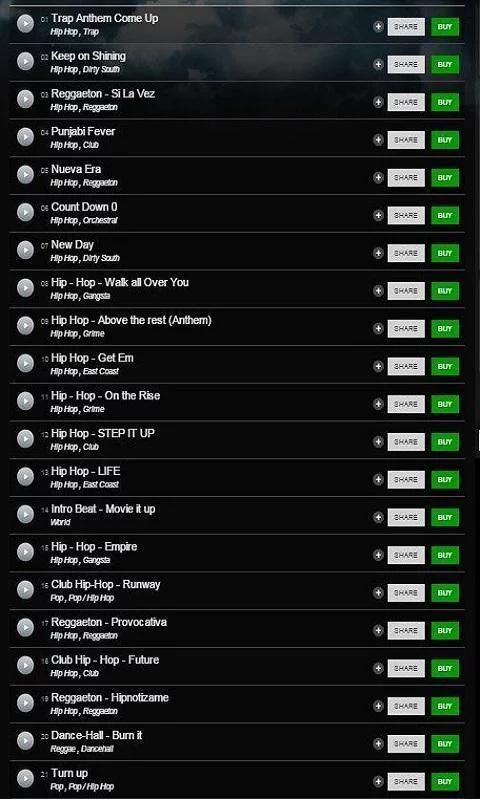 مع هذا التطبيق يمكنك شراء يدق مثل الهيب هوب، الراب، R & B، البوب، فخ، لاب، قاعة الرقص، نادي، وأكثر من ذلك بكثير مع الثقة. ونحن نعمل مع شبكة من 3 مختلف المنتجين حتى تعرف تحصل النوعية وليس الكمية بالنسبة للسعر.