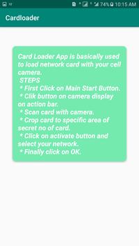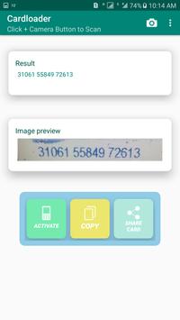 In this card load app user can recharge card by camera, In this you can simply scan card with camera crop card number by crop image function given in app and click activate button. After clicking Activate button u select your card company to recharge card