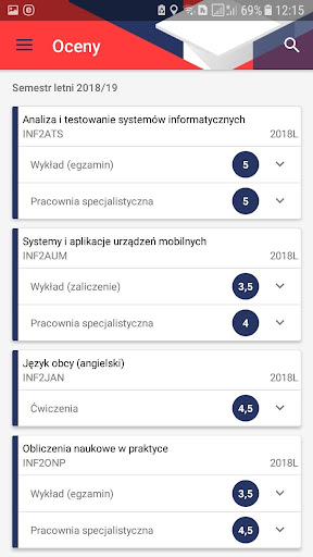 موبايل USOS PB مخصص للطلاب والموظفين في جامعة بياليستوك للتكنولوجيا.