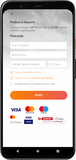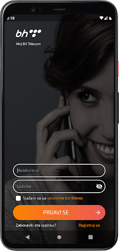 رقم الهاتف المحمول و يتم إدخال كلمة المرور فقط عند بدء التشغيل الأول للتطبيق. يتم استخدام كلمة مرور بوابة BH Teleco الحالية (https://www.bhtelecom.ba) (https://www.bhtelecom.ba) أو يتم إنشاؤها من خلال عملية التسجيل.