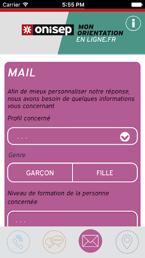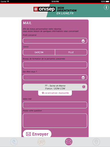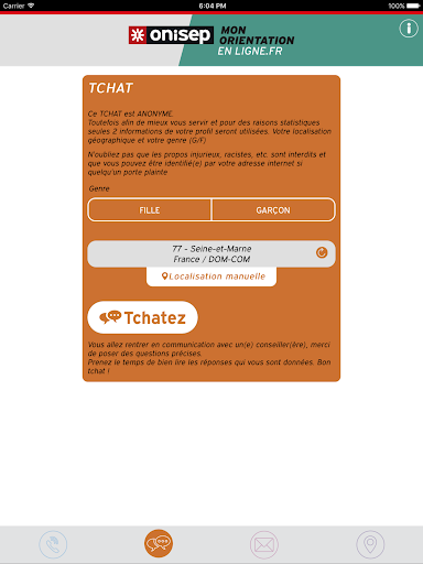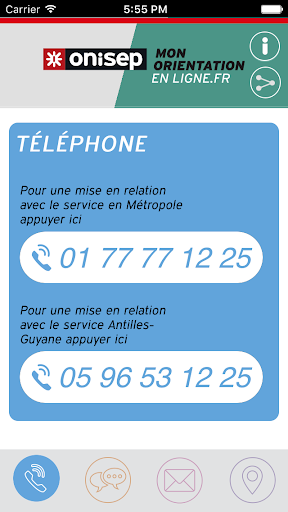 Conservez vos conversations tchats en les envoyant par mél ou SMS. Géolocalisez les centres d’information et d’orientation au plus près de chez vous