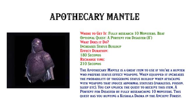 Lista com todos os Mantos do jogo, com sua localização, efeito e intervalos de duração e reuso.