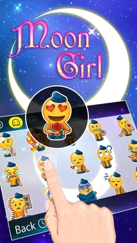 Press Typany keyboard icon------->tap “theme”------->choose and download the fancy hot themes like Moon Girl, which will make your every tap fun, cute and fast , get it now and see our Massive stylish themes and emojis in Typany keyboard. Update weekly, Most lightweight, totally FREE!