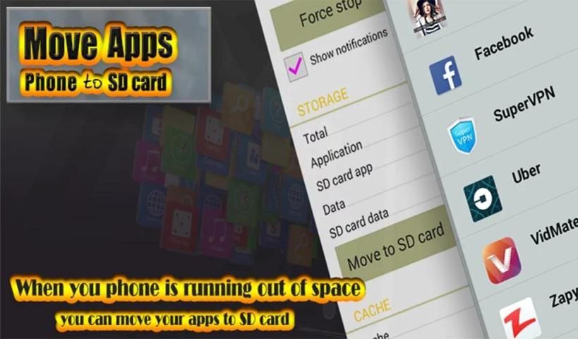 التطبيقات تحرك الهاتف إلى بطاقة الذاكرة الرقمية المؤمنة هو التطبيق الحرة المتوفرة على متجر اللعب. وهذا التطبيق سوف تساعدك على خلق مساحة حرة على جهازك عن طريق نقل التطبيقات إلى بطاقة SD. عندما كنت ينفد من التطبيقات تحرك الفضاء لبطاقة SD أو يمكنك إلغاء تثبيت التطبيق، وقوة إغلاق وحذف البيانات من التطبيق. كما يمكن الاطلاع على تفاصيل التطبيق من خلال النقر على تخزين التطبيق، مخبأ الخ