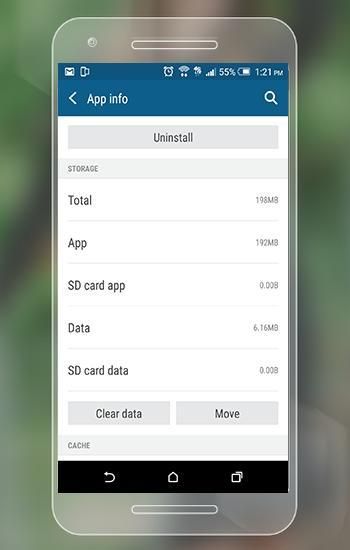 • التطبيقات الانتقال إلى تخزين الهاتف الداخلية