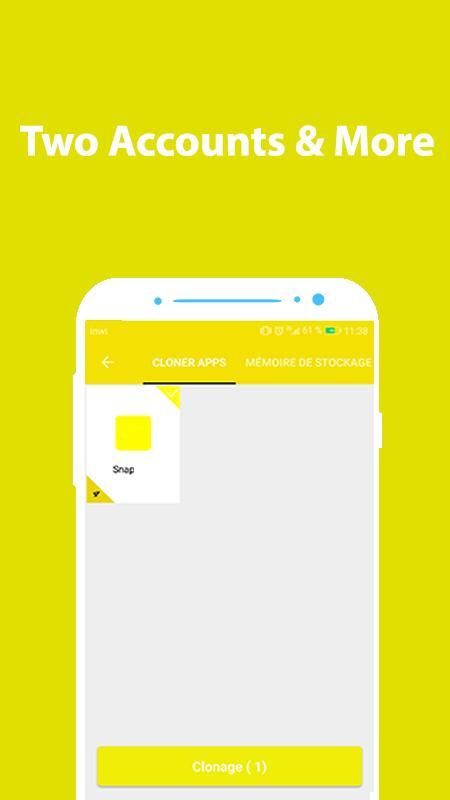 تم تصميم هذا التطبيق التقط استنساخ للمستخدمين الذين يربطون أكثر من حسابين سناب شات في هاتف واحد في حين أن البيانات في حسابك الأساسي والثانية حسابات 2 سناب شات الخاصة بك في حساب مواز وتخزين منفصل، حسابين على هاتف واحد.