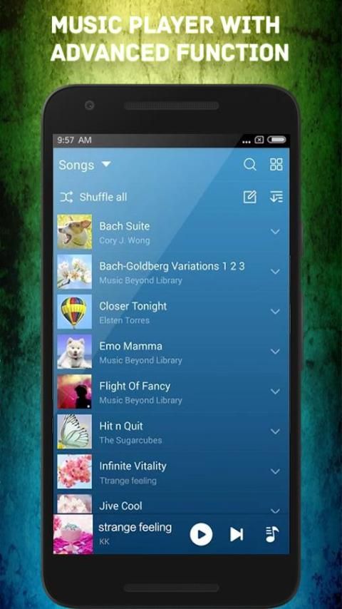 موسيقى ومشغل MP3 مع التعادل قوية، وتصميم أنيق واجهة المستخدم، بحث سريع عن ملفات الموسيقى. كل هذه هي الدعم المجاني بالنسبة لك.