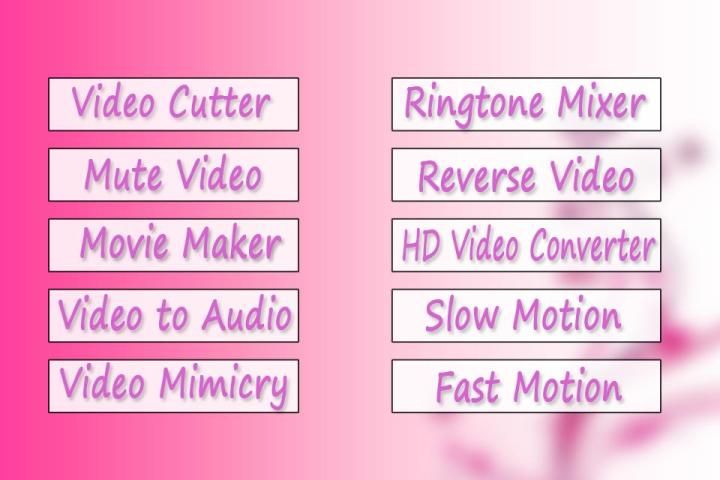 صانع الفيلم، صور لصانع الشرائح فيديو، MP3 النغمات خلاط، عكس الفيديو HD، بطيئة الحركة الفيديو، سريع