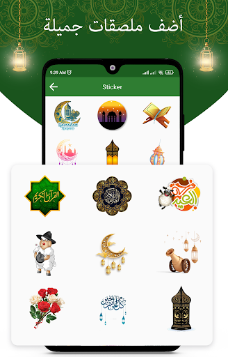 تطبيق مسلم كارط يسمح لك أيضا بتعيين إطارات و ايقنات و اضافتها إلى البطاقات الخاصة بك يمكنك أيضا جعل تصميم بطاقة أفضل باستخدام الورود، تشاند والكثير من عناصر التصميم الأخرى.