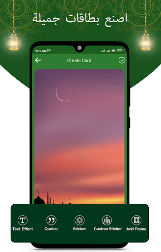 تطبيق Muslim Card يوفر لك تصميم البطاقات الخاصة بك بطريقة فريدة و جميلة مع جودة HD، و هناك الكثير من بطاقات و الخلفية و صور HD في تطبيق مسلم كارط ويمكنك اختيار أي واحد وكتابة رسالة المعايدة الخاصة بك، حدد قبل تحديد رسائل المعايدة، يمكنك تغيير الخط واللون والحجم.