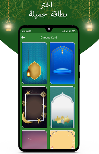 مسلم كارط هو تطبيق يتيح لك خيارات للاختيار بين بطاقات العمودية واخرى افقية . يمكنك أيضا تحديد بطاقة الخلفية التي تريد عن طريق الكاميرا أو gallary.
