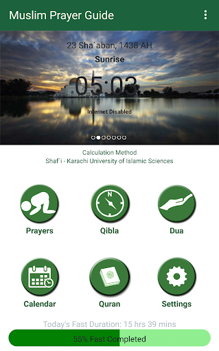 - Current time and remaining time for the next prayer is mentioned to help you prepare for