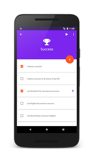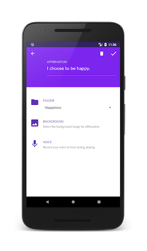 تطبيق التأكيدات الخاصة بي يساعد على تشريب الأفكار الإيجابية في عقلك من خلال إعطائك تذكيرات في المدة المحددة. يمكنك اختيار تأكيدات من فئات مختلفة، والتي تريد إظهارها كإشعار.