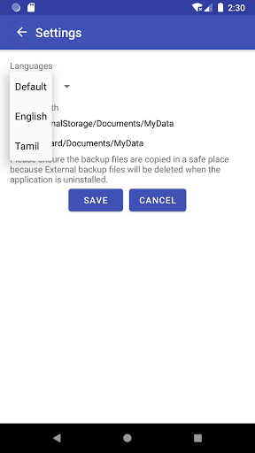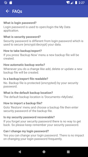 ☆ يتم إنشاء ملف النسخ الاحتياطي كلما تغير المستخدم / إضافة البيانات.