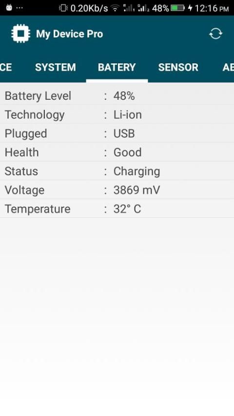 - معلومات البطارية: مفصل تشخيص بطارية الجهاز بما في ذلك سعة الشحن، خرج الجهد ودرجة حرارة البطارية.