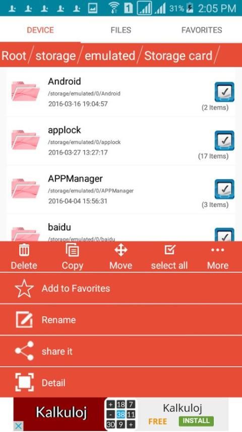 إدارة الملفات يساعدك على إدارة كل ما تبذلونه من الملفات بكفاءة! مع واجهة سهلة الاستخدام، إدارة الملفات يسمح لك للتعامل مع أي ملف أو مجلد ما إذا كان يتم تخزينها في حسابات الجهاز، بطاقة microSD، أو سحابة التخزين الخاص بك.