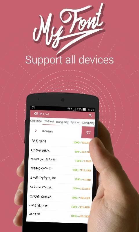 My best Font support for Samsung models (without root), and the line of HTC devices, Lenovo, Motorola ... (Requires root), font changer for whole phone. Application divided into several different categories for you to easily use.