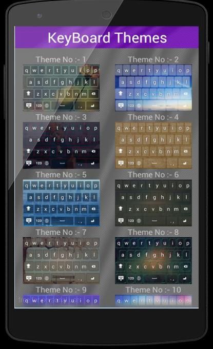 لديك أكثر من 20 موضوع لوحة المفاتيح للاختيار من بينها لوحة المفاتيح الخاصة بك، ويمكنك ان تحدد كل ما الصورة التي تريدها كخلفية لوحة المفاتيح، وموضوع بورد الرئيسي هو مع لغات متعددة.