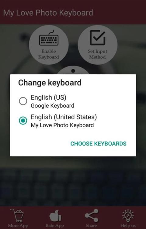 £ قم فقط تمكين لوحة المفاتيح هذه من خلال النقر على "تمكين لوحة المفاتيح 'وتختار' بلدي لوحة المفاتيح الحب صور.