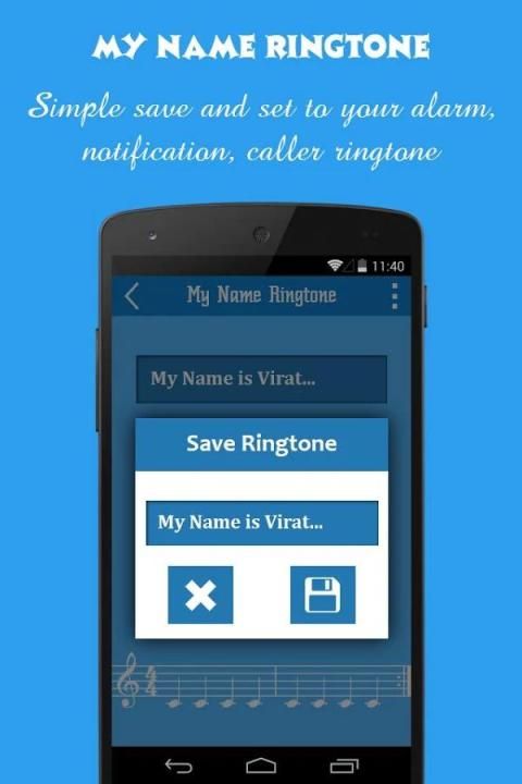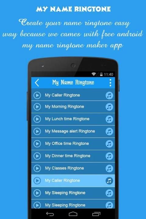 هذا التطبيق، سوف اسمي صانع النغمات خلق اسمك كنغمة رنين. إذا كنت ترغب في إنشاء اسمك أو اسم الحبيب اولادكم ثم يصبح من السهل إنشاء وتعيين كنغمة رنين.