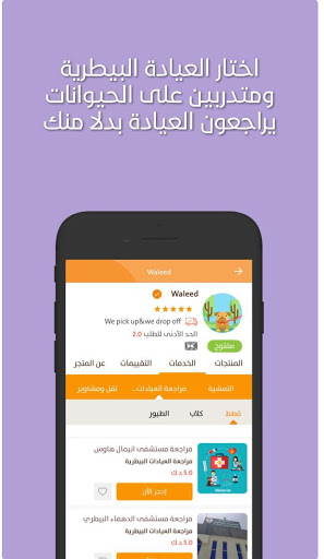 اختر اي عيادة بيطرية والمندوب يراجع العيادة المختارة وينفذ كافة الخدمات بناءا على طلبك