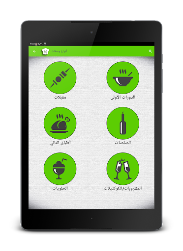 ● يمكنك حفظ الوصفات مجمعة في المقبلات والدورات الأولى والدورات الثانية والصلصات والحلويات والمشروبات / الكوكتيلات.