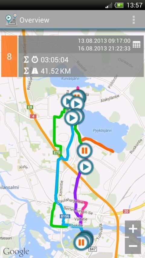 MyTracks مثالية للمسافرين من يبحث عن وسيلة لتتبع الأماكن التي قد تم بالفعل. مثل سائح يزور مدينة جديدة. يمكنك إنشاء سجل شخصي من المسارات الخاصة بك، وتصنيفها في جولات، ومراجعة المسارات الخاصة بك في وقت لاحق، أو ببساطة يكون لهم عرضها على الخريطة عند الخروج مرة أخرى وعدم الذهاب إلى أماكن كنت قد تم بالفعل.