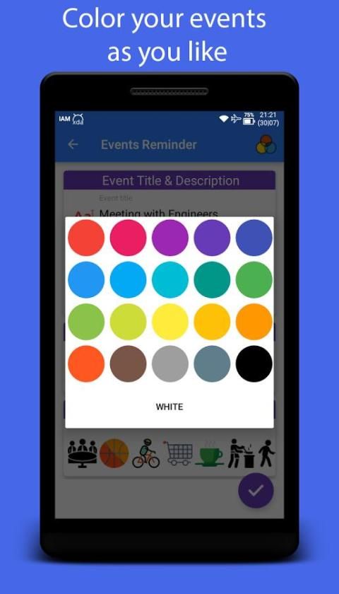 + تخصيص هذا الحدث الخاص بك كما تريد من خلال إعطائها اللون المفضل لديك ورمز وعندما وقتها سوف يتم إخطار إلى أن الحدث المحدد.