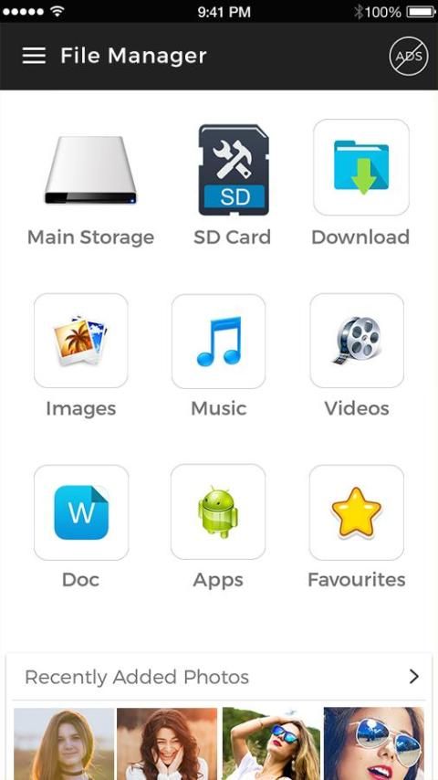 • سهولة التصفح ملف: انظر الملفات بسهولة من قبل فئة مباشرة من الشاشة الرئيسية لإدارة الملفات: الصور، والفيديو، والموسيقى، والتطبيقات، تحميل & المفضلة.