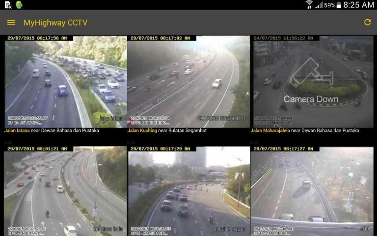 ماليزيا يعيش المرور CCTV تحديث كل 4 ثوان. تحقق ماليزيا الطريق التقارير كاميرا فيديو لازدحام المرور وأحوال الطرق المحلية من جهاز الكمبيوتر الخاص بك أو حتى الهاتف المحمول. صفحات صديقة وسريع التحميل تعظيم فعالية الأوقات الخاصة بك.