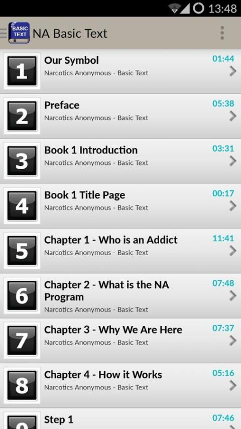يقصد به أن يكون الكتاب المدرسي الكامل لكل مدمن تسعى إلى استرداد، زمالة المدمنين المجهولين يصف البرنامج NA وكيف يعمل. وهي تشمل NA اثنا عشر خطوات واثنا عشر التقاليد، فضلا عن العديد من القصص الشخصية من الرجال والنساء الذين وجدوا الحرية من الإدمان من خلال زمالة المدمنين المجهولين.